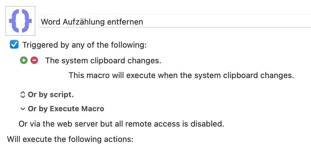 In der Praxis ändert sich nichts am Arbeitsablauf: Cmd + C, um markiertes Wort oder mehrere Zeilen (auch in einer Aufzählung) zu kopieren. Ist ein Word-Fenster im Vordergrund und enthält der kopierte Text Aufzählungszeichen, wird er bereinigt, auch Leerzeichen am Anfang oder Ende. Man kann also gleich mit Cmd + V den Begriff ins Suchen und Ersetzen-Feld oder DeepL einfügen und die Suche läuft. Kein korrigieren des Suchfelds mehr nötig.