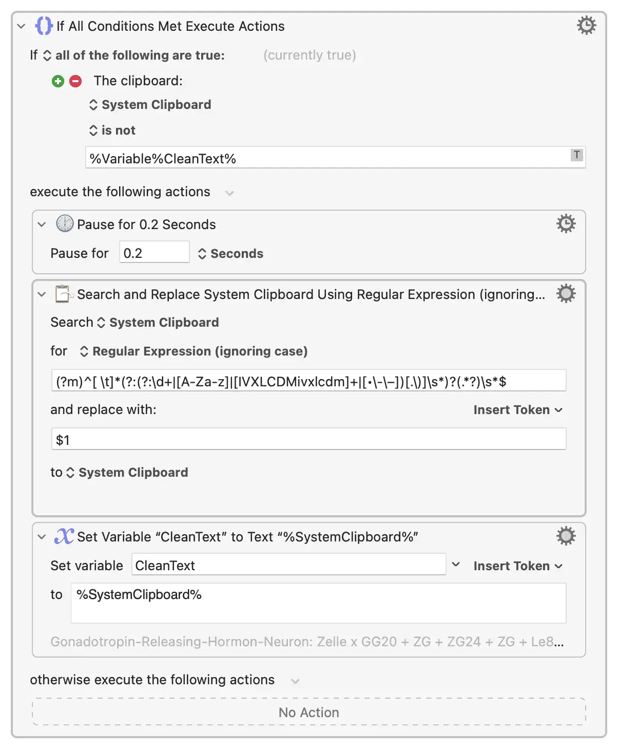 - Ersetze den Inhalt der Zwischenablage mit „CleanText“